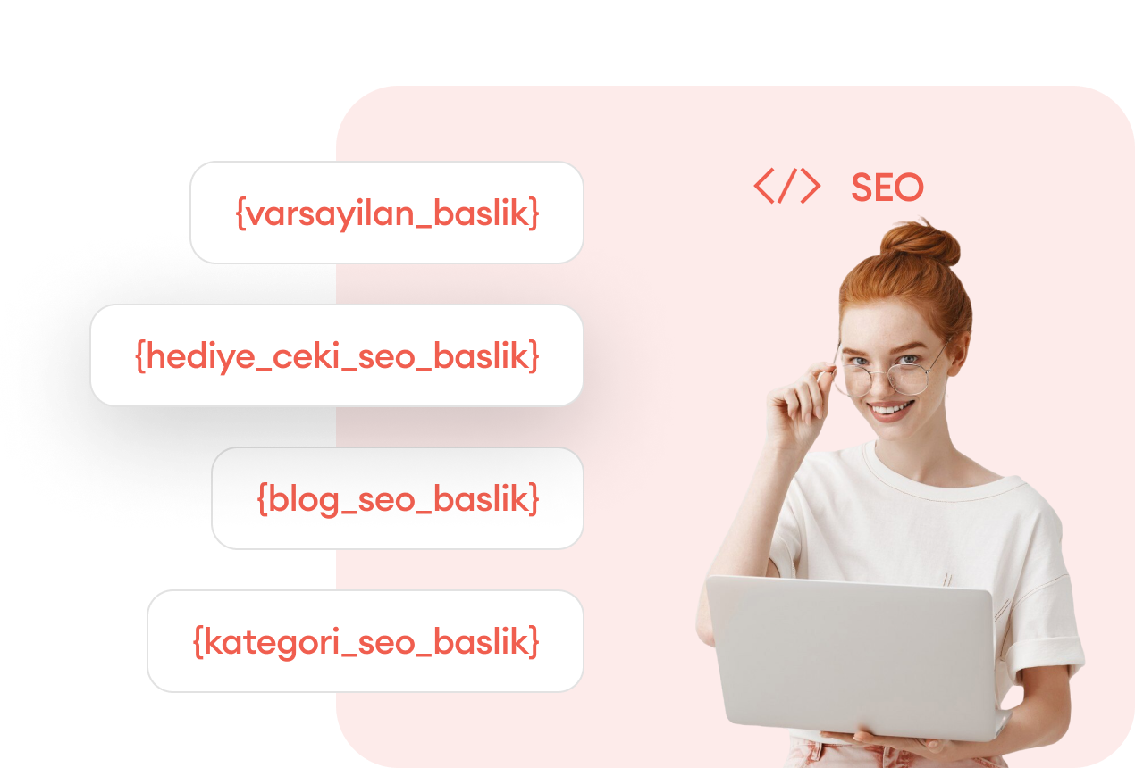 Ürünlerinizin SEO başlık, meta açıklama ve anahtar kelimelerini değişkenlerle toplu olarak güncelleyebilirsiniz.