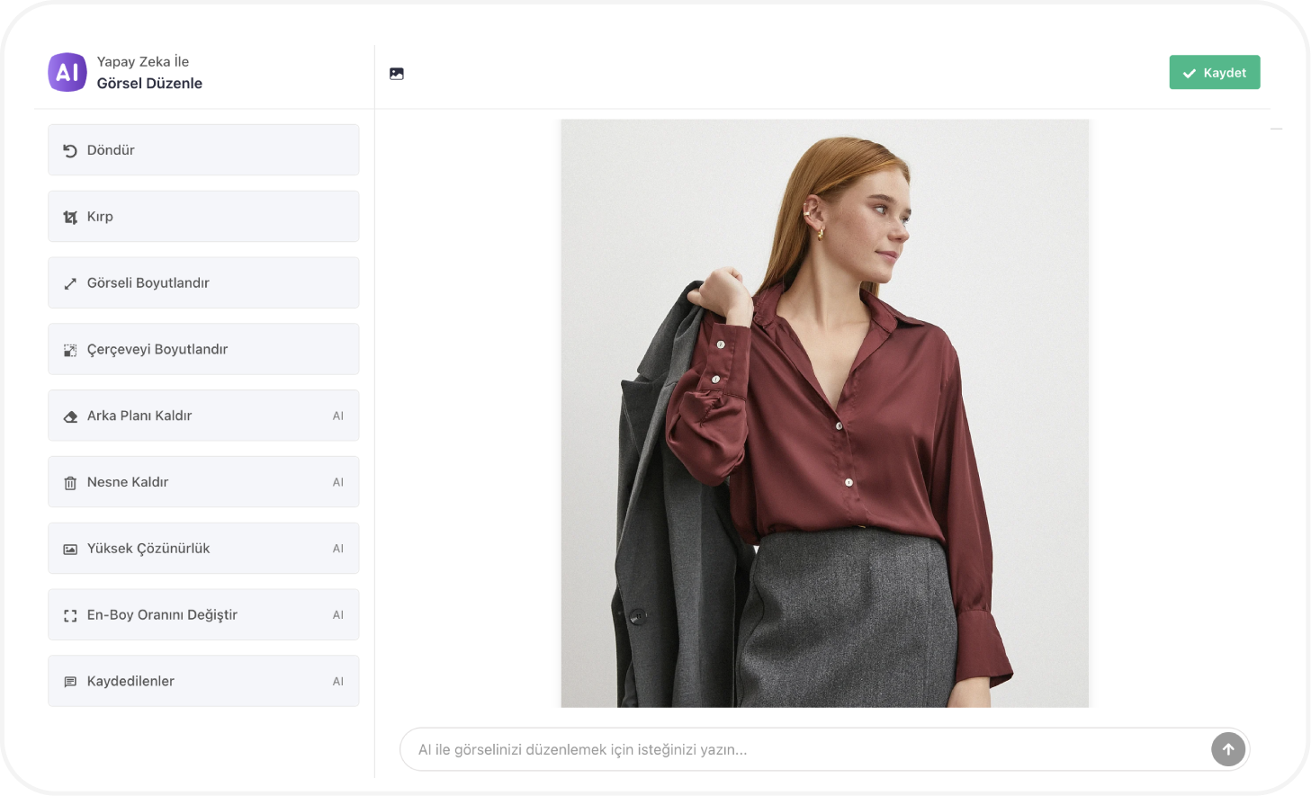 Yapay zeka destekli Qukasoft AI ile ürün görsellerinizi ve bannerlarınızı tek panelden saniyeler içinde oluşturun. Metninizi yazın, tasarım tercihlerinizi seçin; teknik bilgiye gerek kalmadan hızlı, zahmetsiz ve profesyonel sonuçlar elde edin.